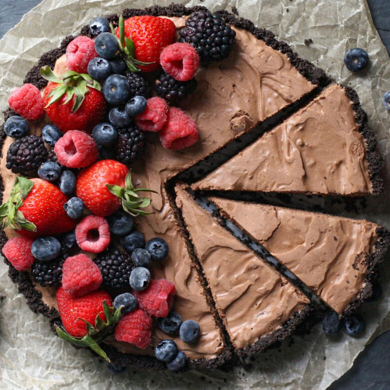 Rich, chocolate mousse inside of a graham cracker crust. Served with whipped cream and berries.